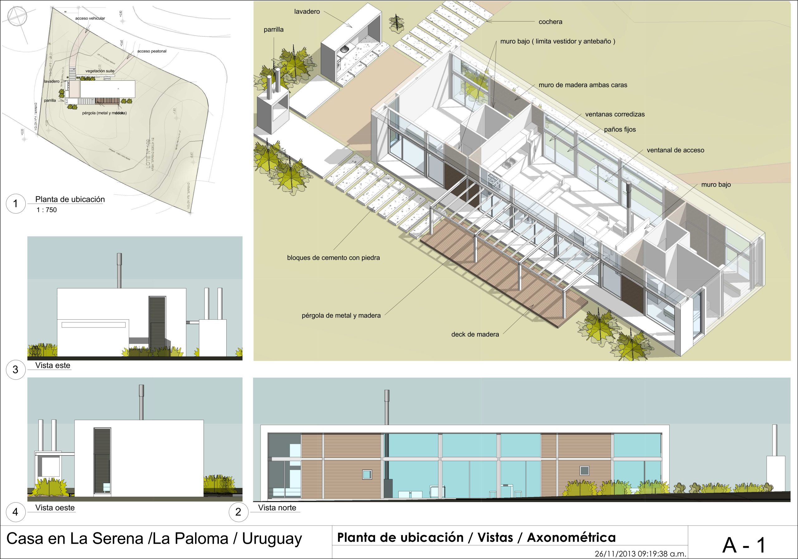 La casa es de 1 planta con doble altura. Los grandes frentes vidriados y la ubicación de la casa permiten obtener las mejores visuales a la cancha de golf y al mar.