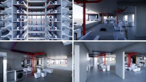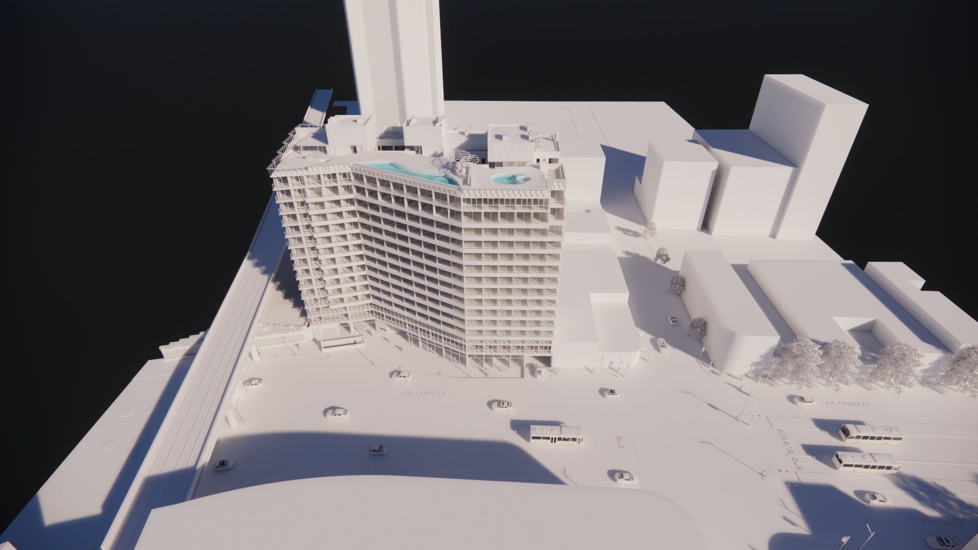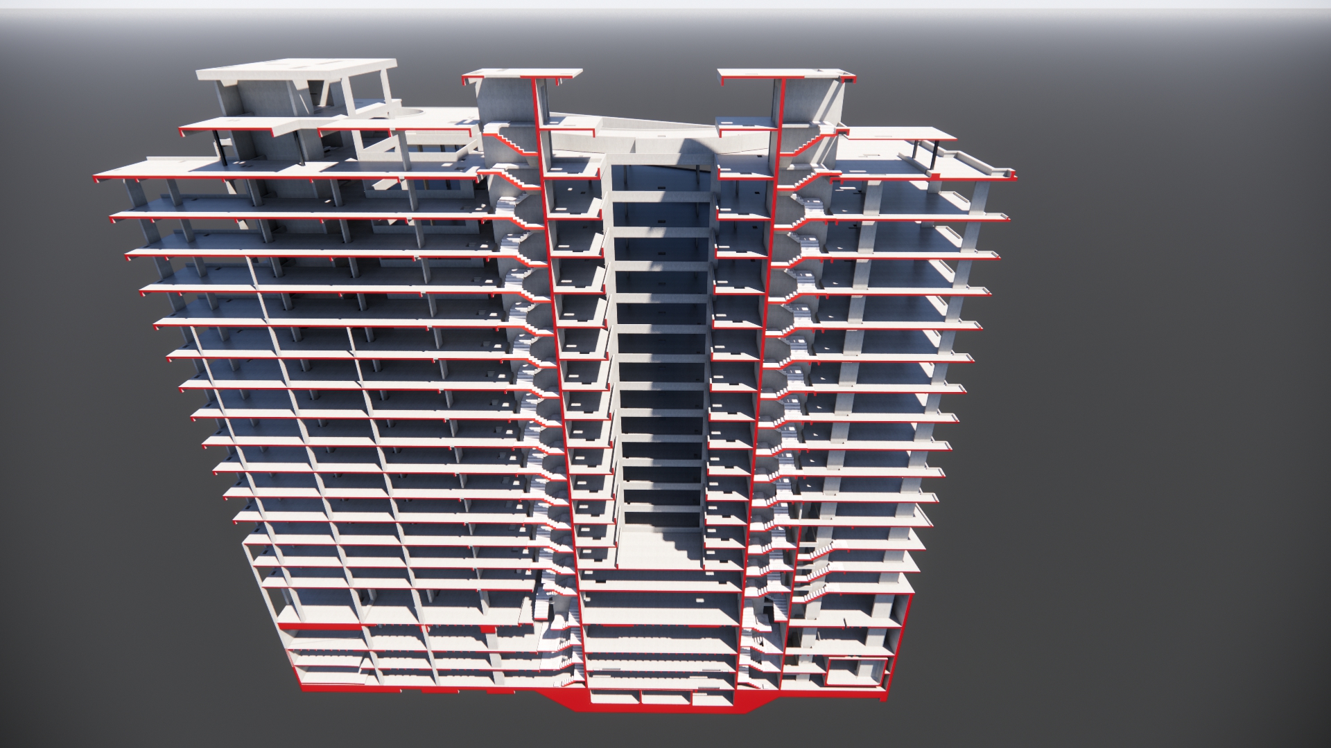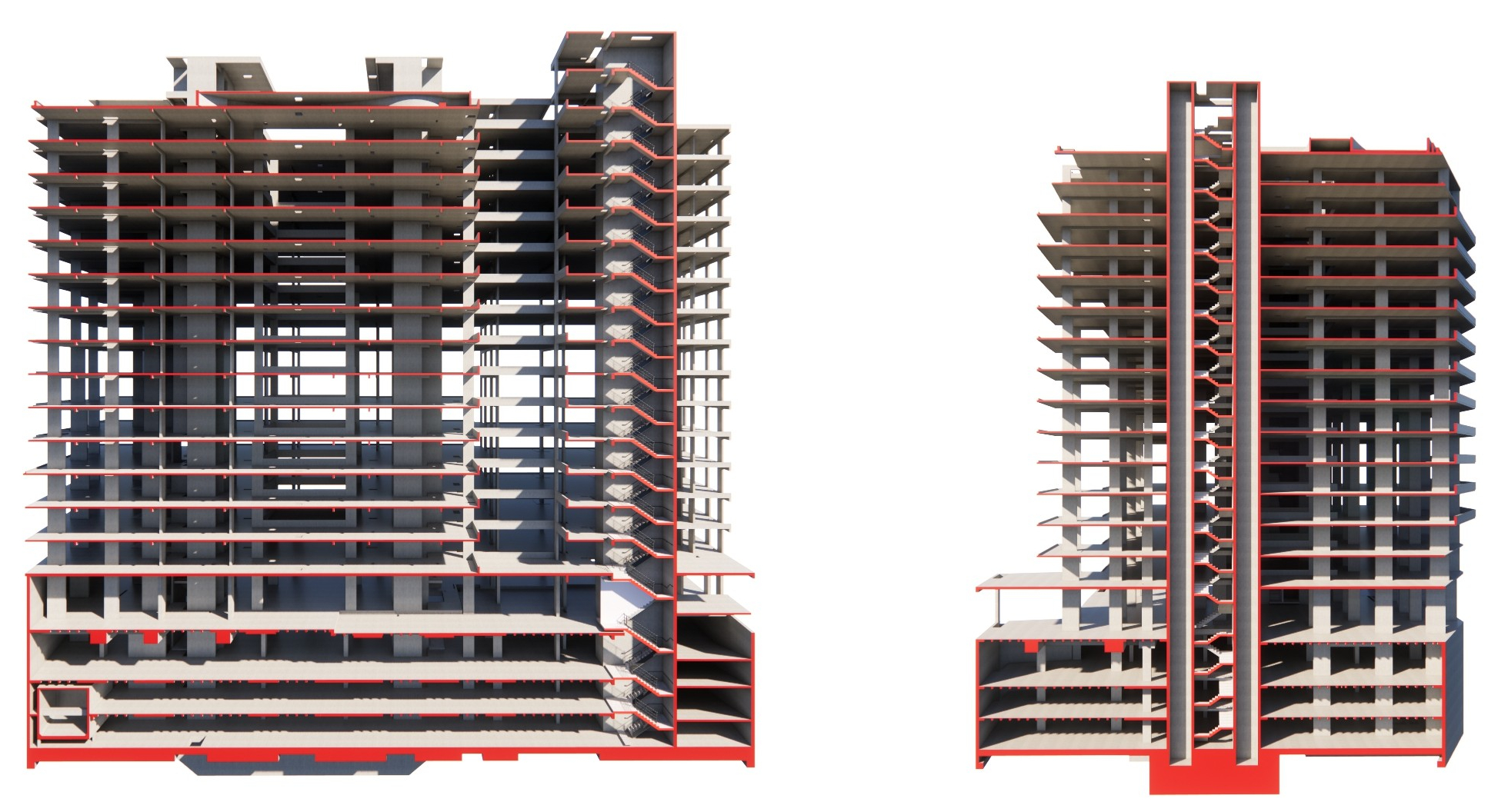 El conjunto esta compuesto por 3 modulos de edificios, 3 subsuelos Planta Baja, 14 plantas y terraza y amenities.