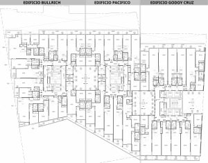 Modulo Pacifico de unidades de vivienda de 1,2,3 y 4 ambientes en el área central de la planta.