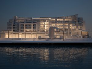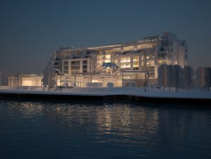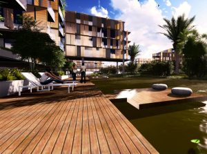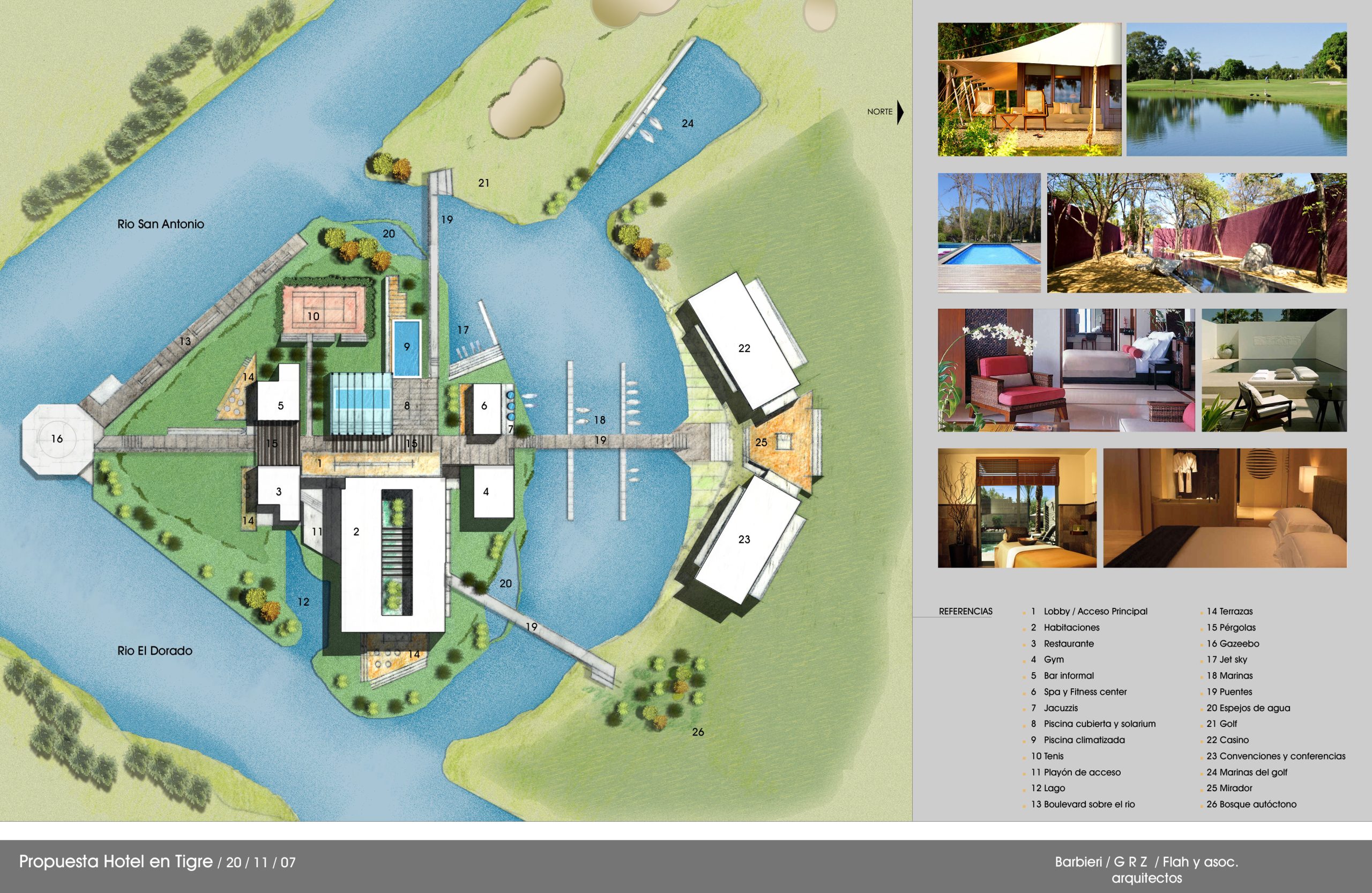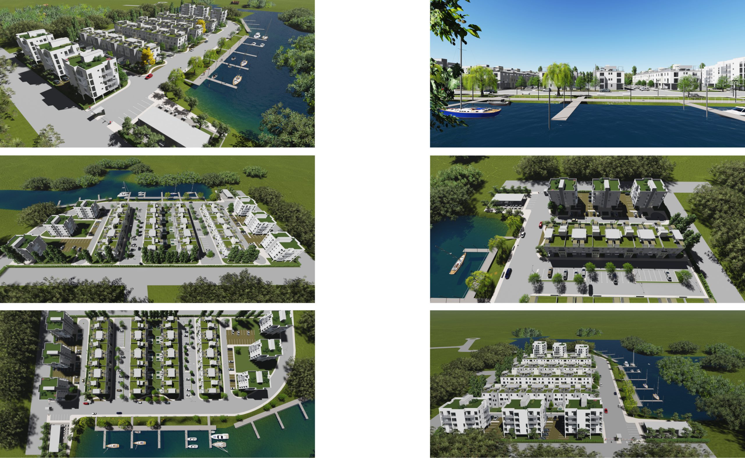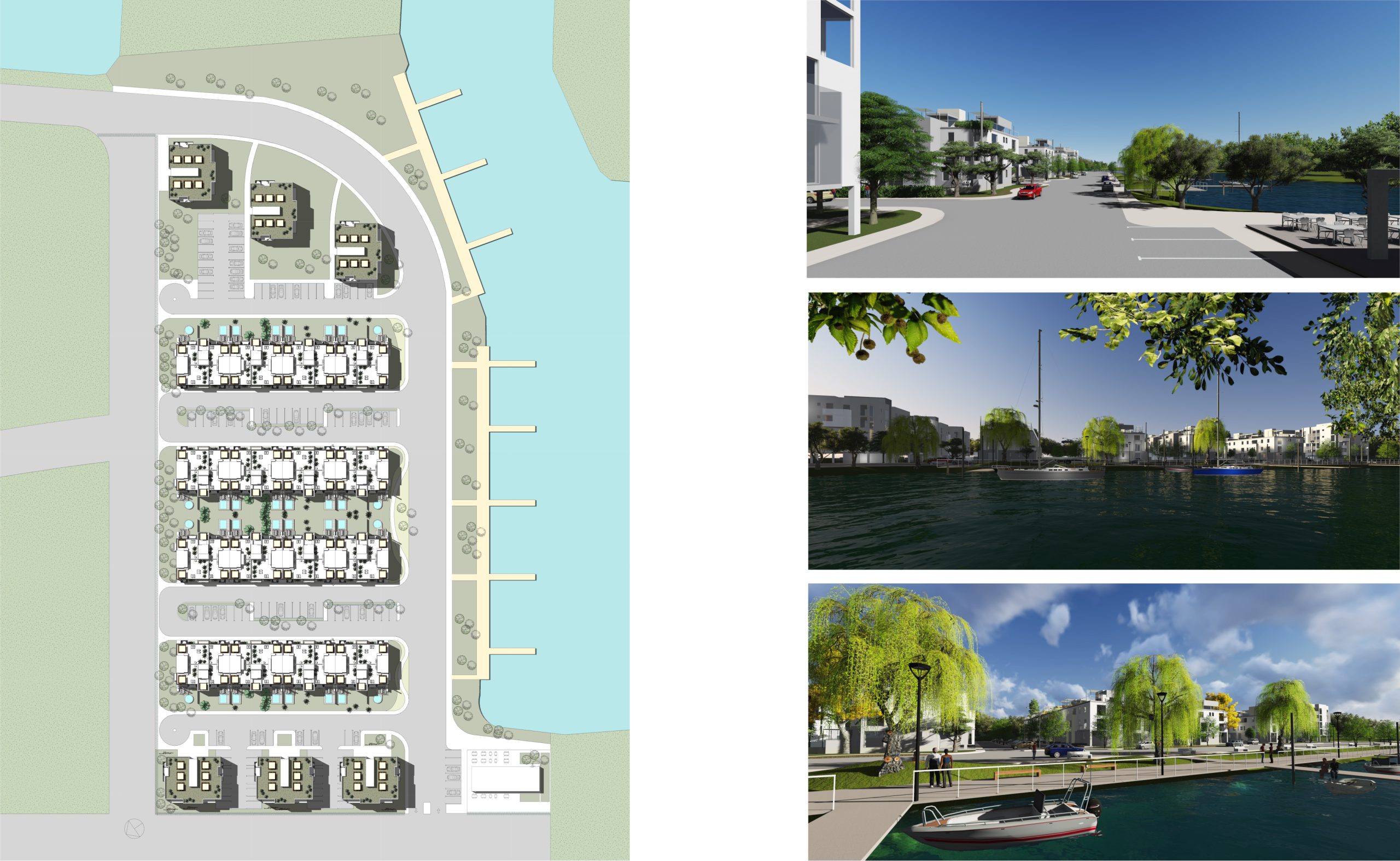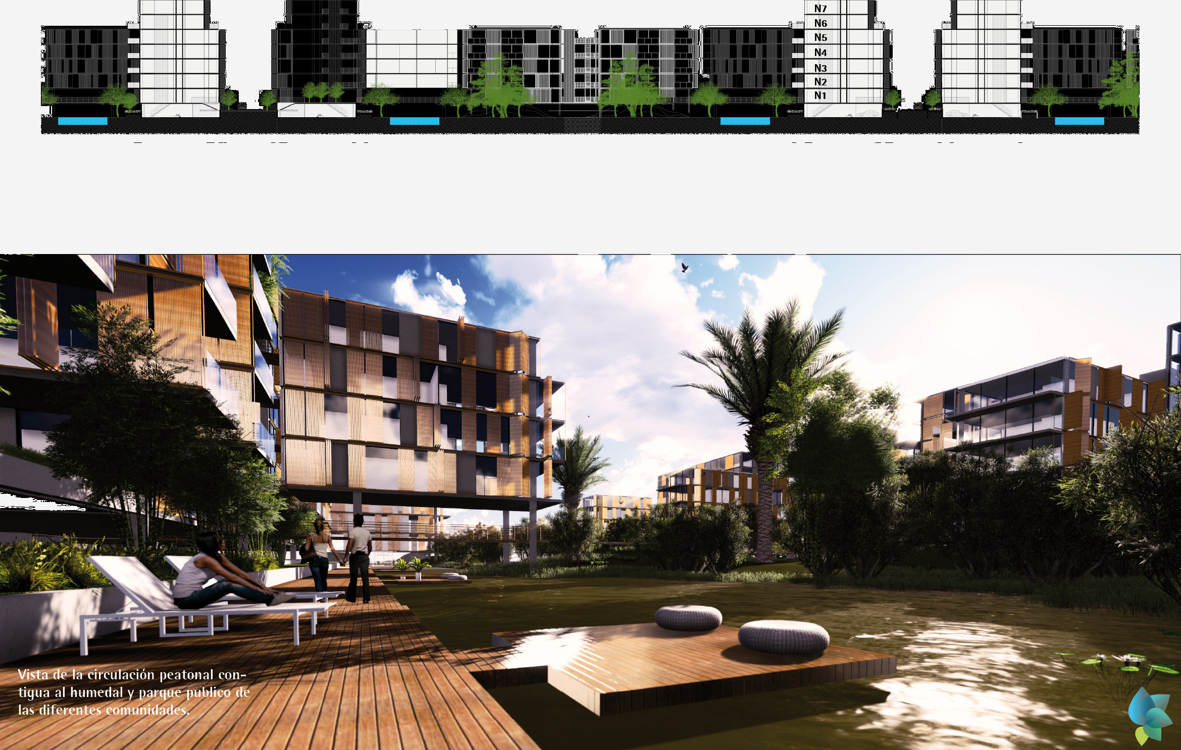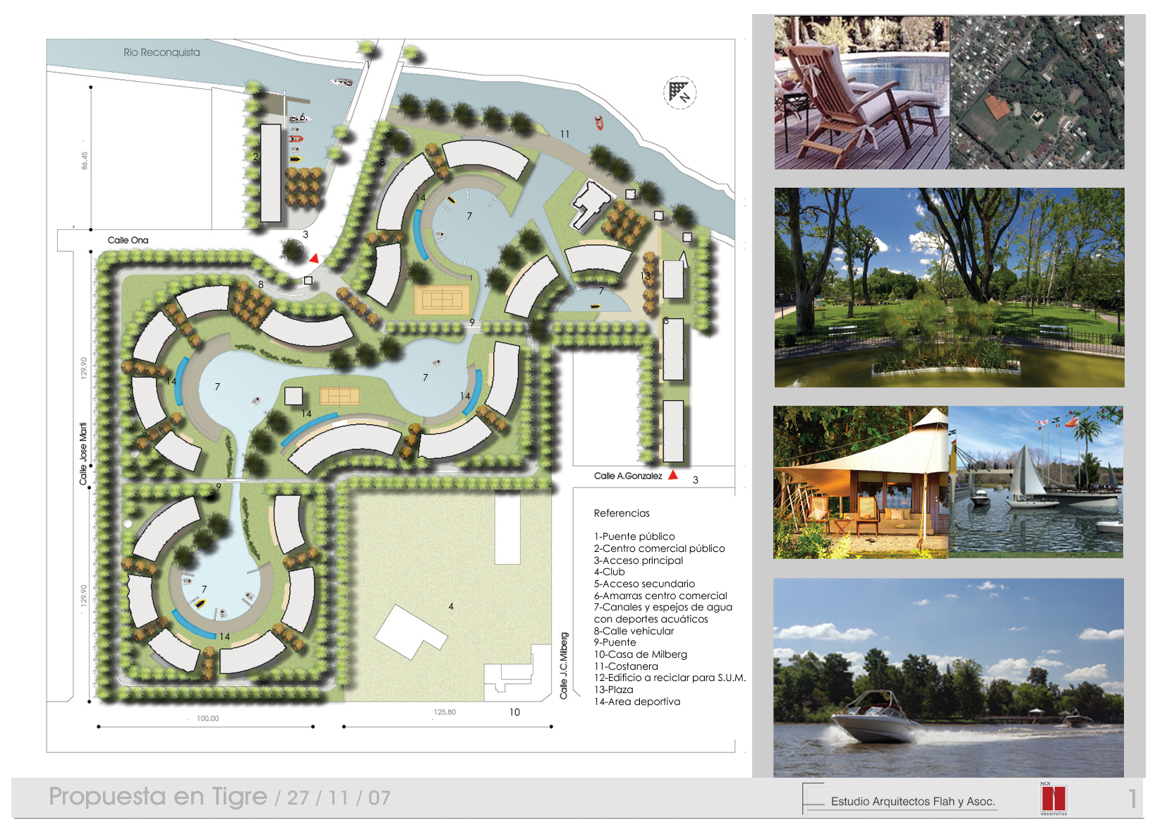 En una fracción sobre el rio en el partido de San Fernando, se plantea esta propuesta que incluye viviendas en altura con amplias visuales al rio y terrenos con amarras para barcos.