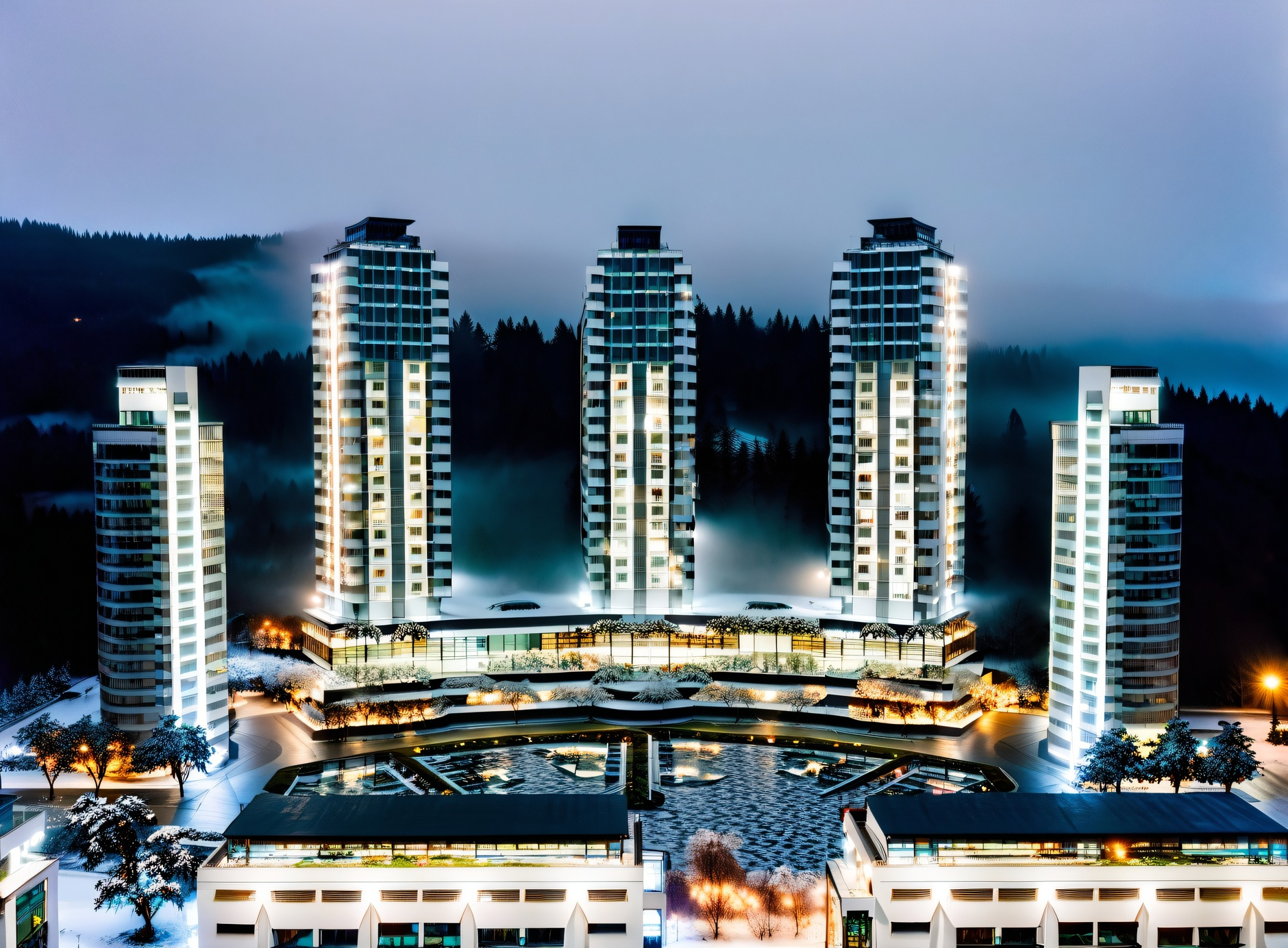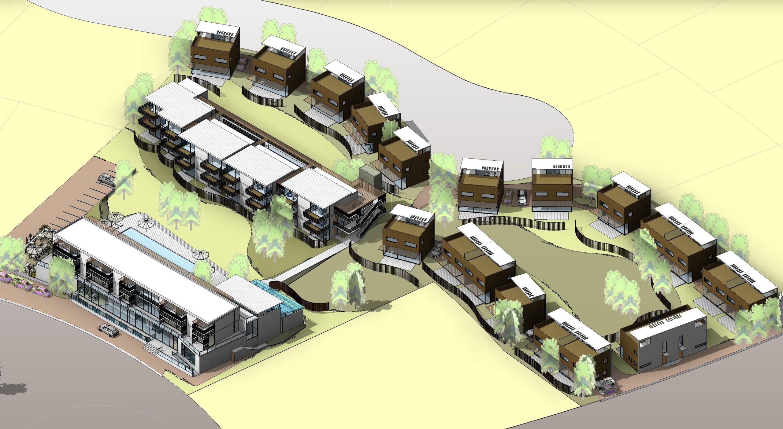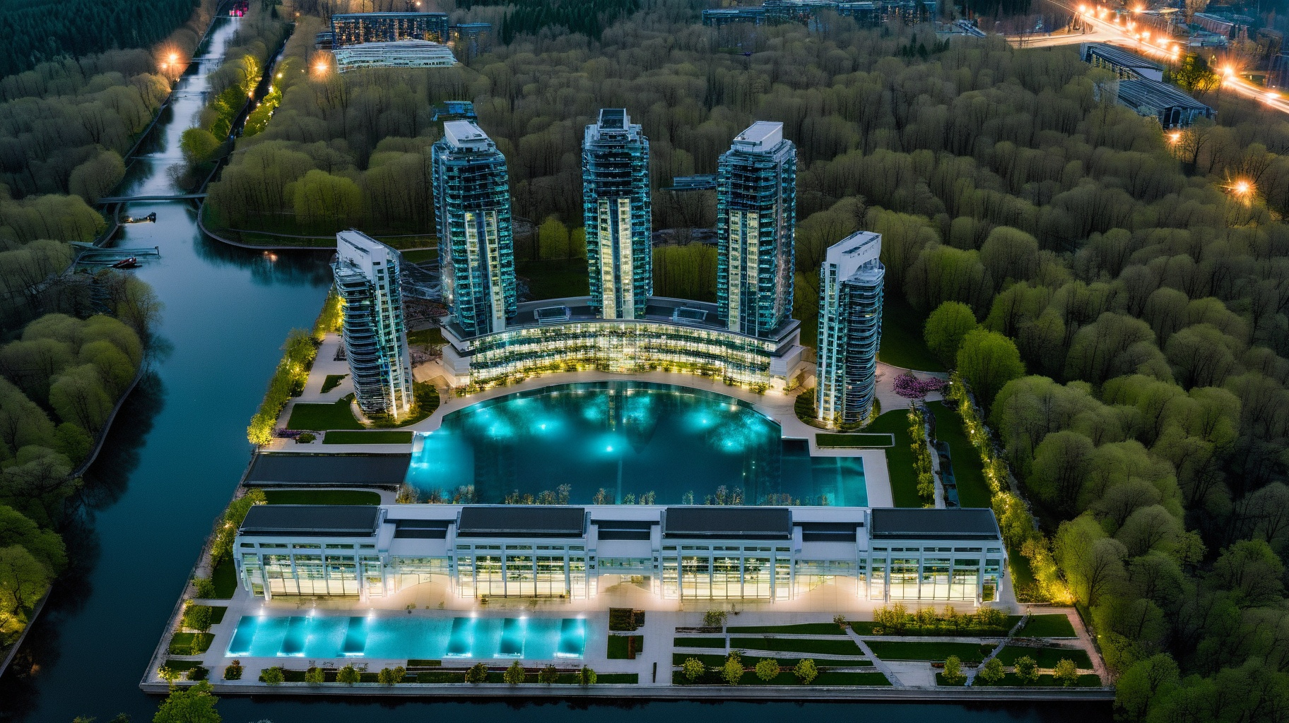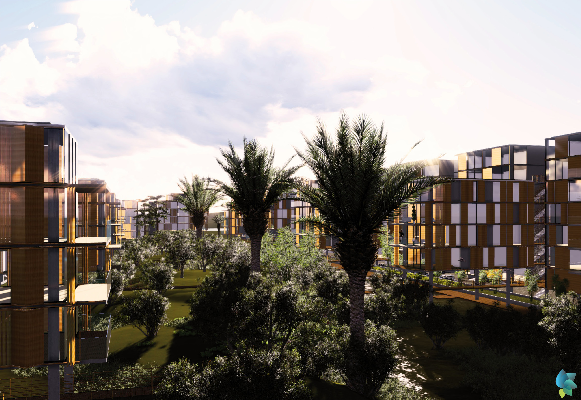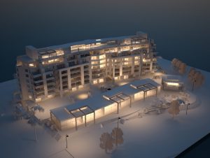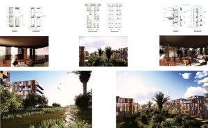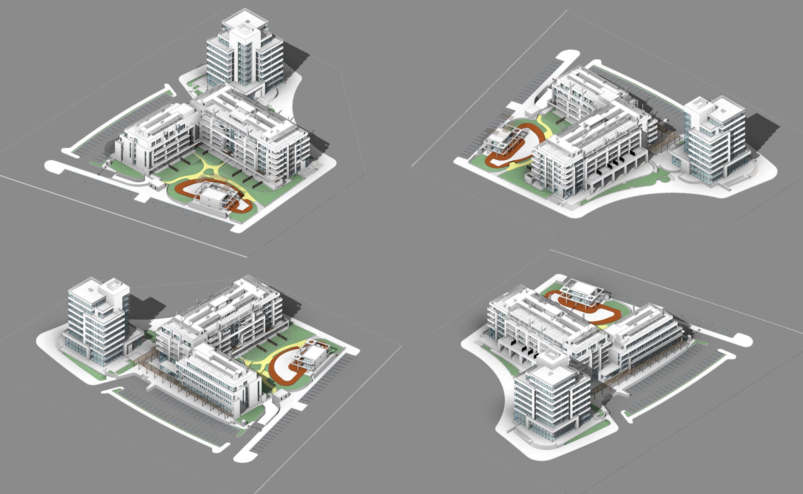 Se trata de un complejo compuesto por unidades de vivienda en dúplex y un edificio corporativo para una empresa multinacional.