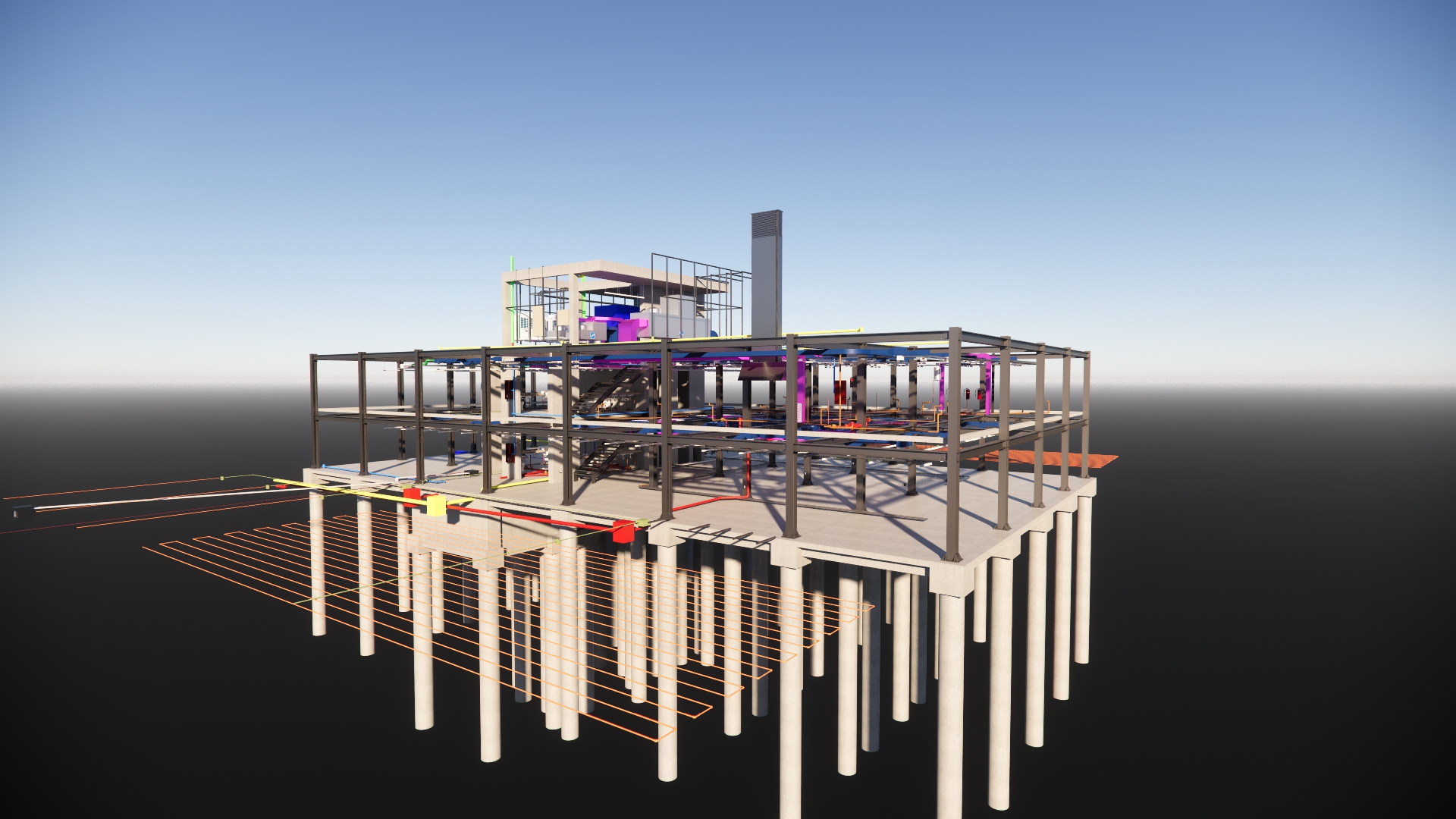 El núcleo y el subsuelo se resuelven en estructura de hormigón armado, que permitirá rigidizar y arriostrar la estructura metálica isotrópica.