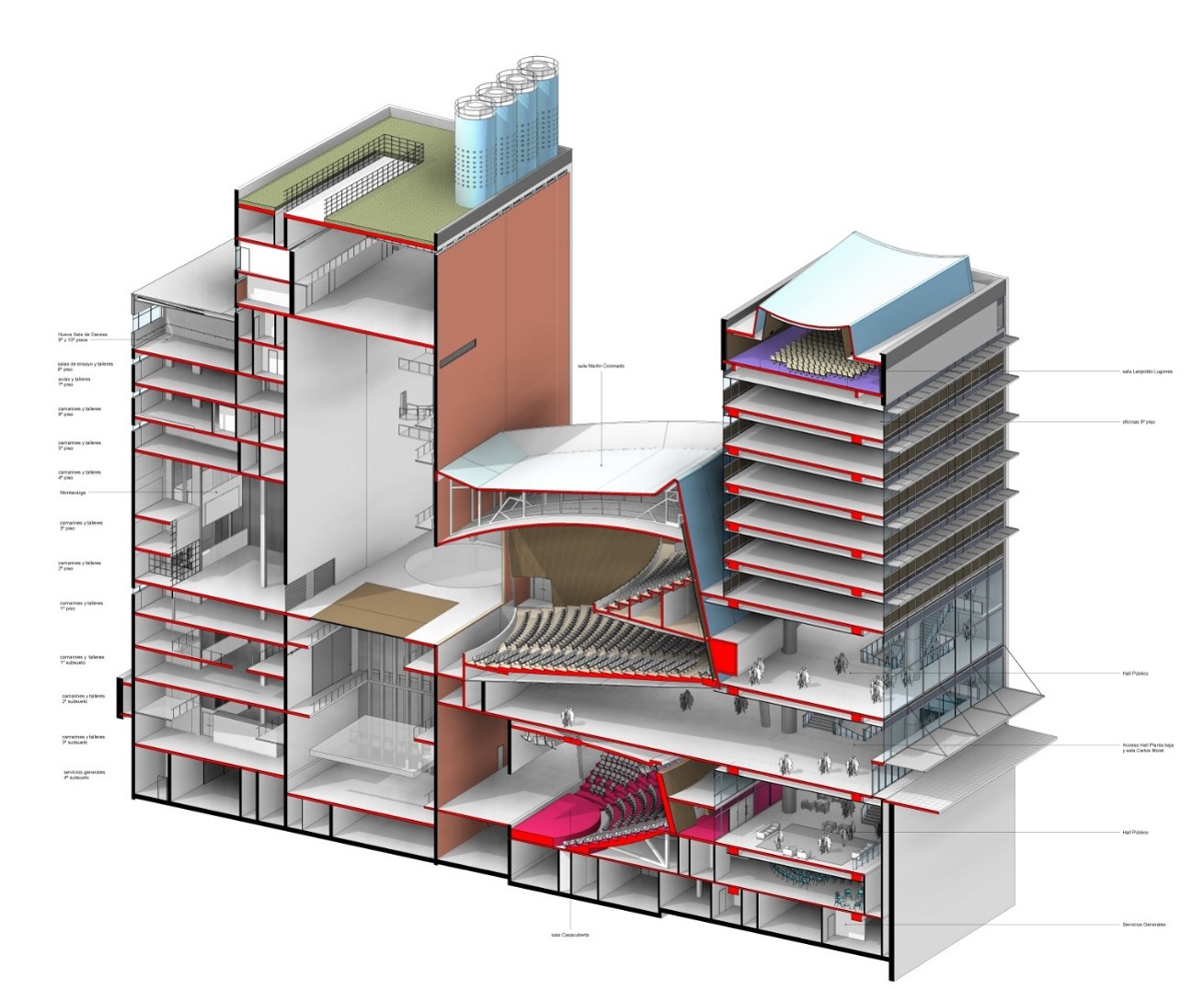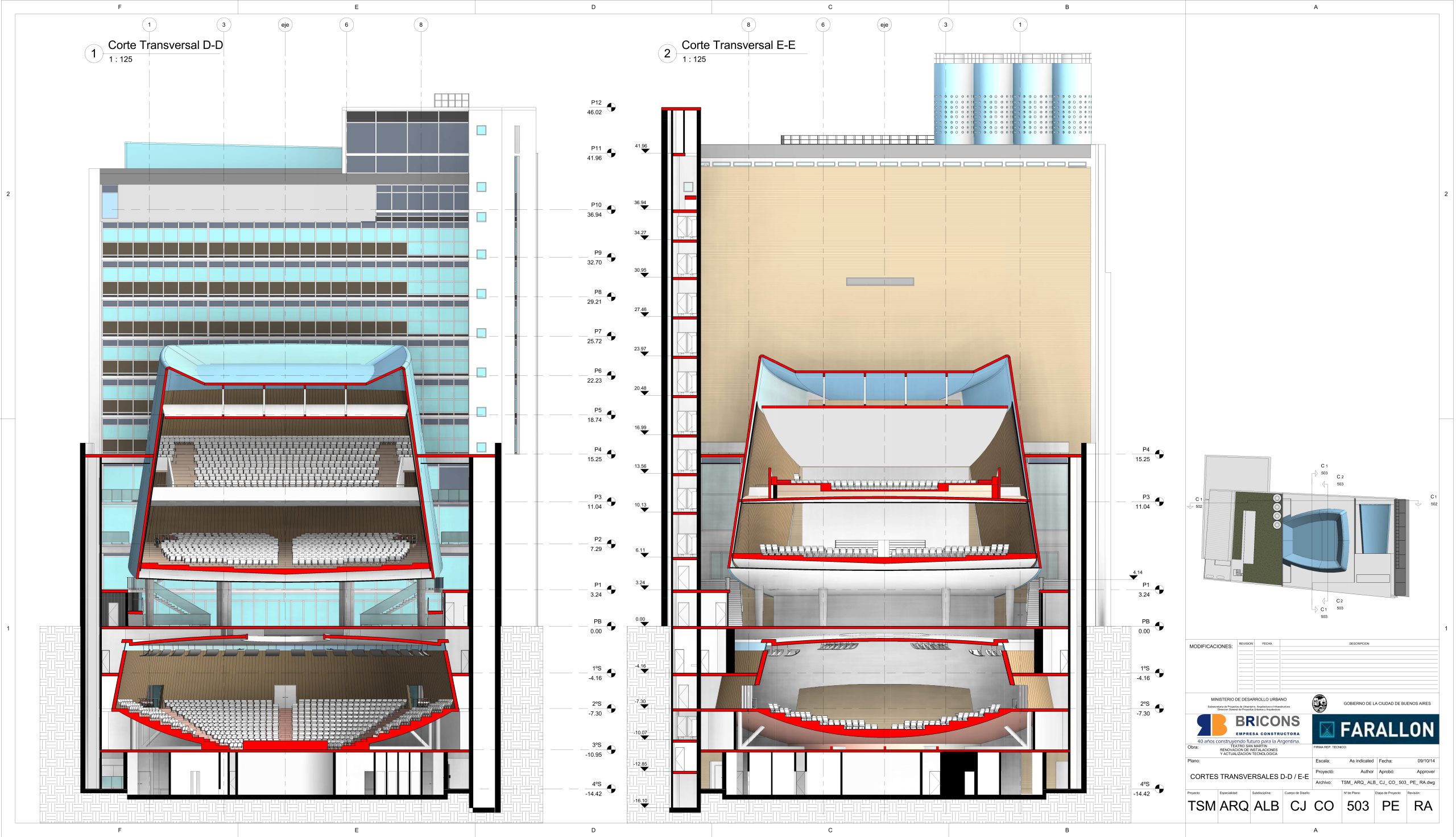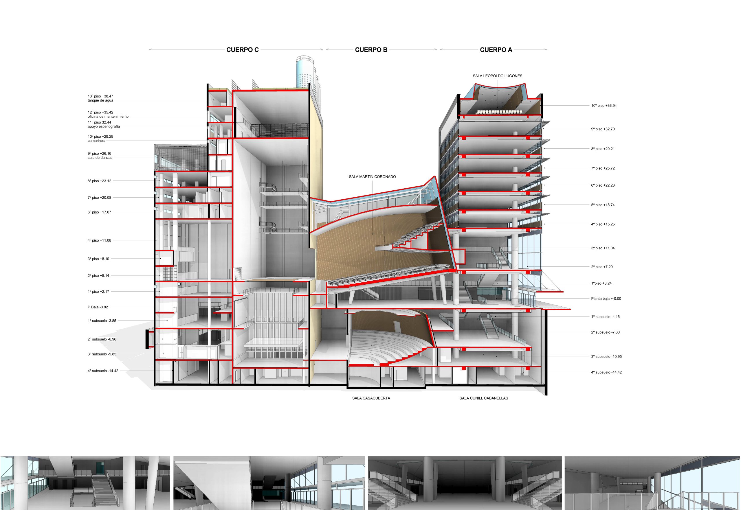Asesorias: Incendio Ing. Miguel Ruoti, Teromecanica Ing. Blasco Diez, Inst. Electrica Ing. Guzman, Estructura Ing. Javier Fazio, Acustica Estudio Basso-Fariña, Patrimonio Arq. Valeria Reboiras, Eduardo Scagliotti Electromecanica Lic. Carlos Maskin, Inst. Sanitaria Arq.Juan C. Beverati, Escenotecnia Lic. Gabriel Caputo, Iluminacion Arq. Pablo Pizarro